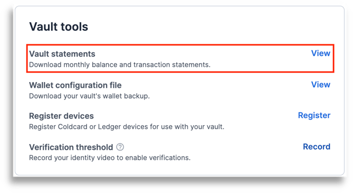 - Select View next to Vault Statements. Note: If you do not see this option yet, you will need to wait till the 1st of the next month at midnight.