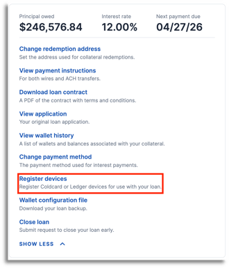 Loans: Click Register devices from the loan page menu.